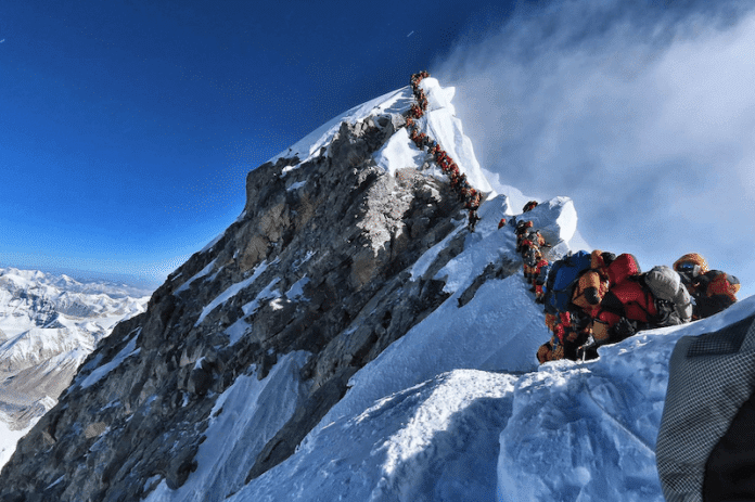Entretanto, as imagens da fila para chegar ao topo da montanha mais alta do mundo já estão a correr o mundo. Um autarca português, depois de ver tal coisa, sugeriu às autoridades locais a construção de 20 rotundas até lá cima.